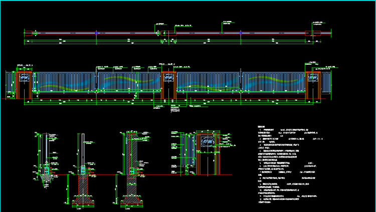 4、围墙所有金属构件焊接部分焊缝均应挫平,均须做防腐防锈处理,露明的金属构件均采用整体聚酯漆静电喷涂。各金属构件表面应光滑、平直、无毛刺。无铁锈、无油污及附着在构件表面的杂物。围墙格栅及构件均为乳白色聚酯漆静电喷涂,格栅按图喷涂蓝绿色飘带造型。