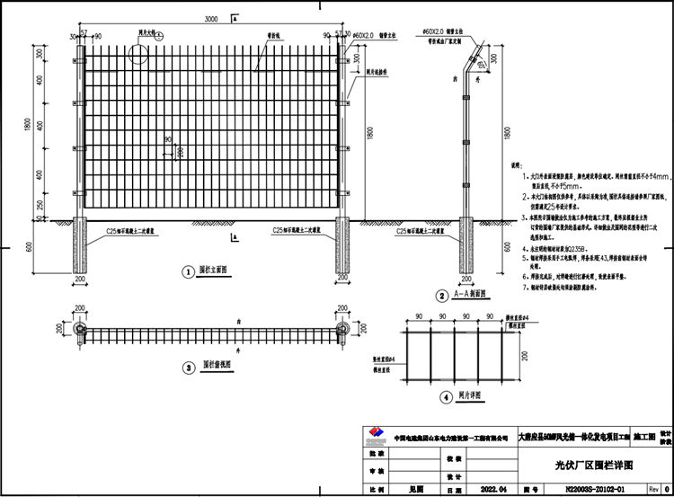 3、本图所示围墙做法仅为施工参考的施工方案,应根据业主所订货的围墙厂家提供的基础形式、详细做法及围网的花型等进行二次选型和施工。