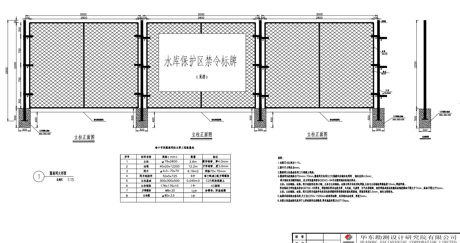钦寸水库隔离防护网图纸说明: