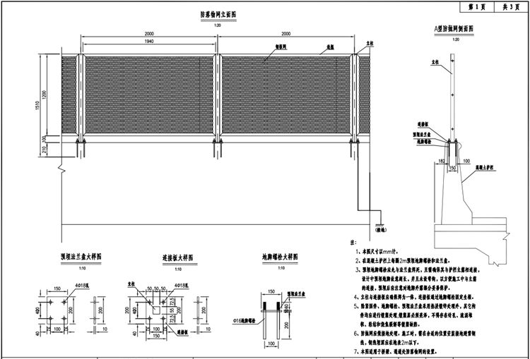 6、万源市快速路防抛网应做接地处理。施工时,需在合适的位置安装接地避雷铜线,铜线埋深应在地表2m以下。
