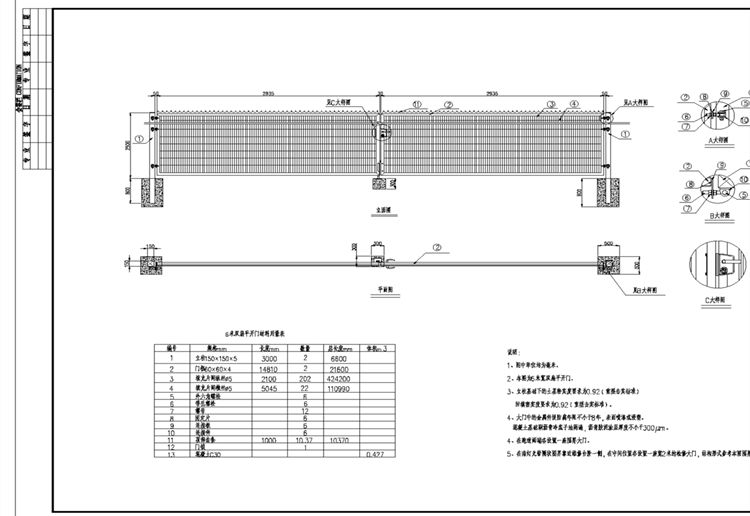 2、本图机场钢筋网围界大门为6米宽双扇平开门。