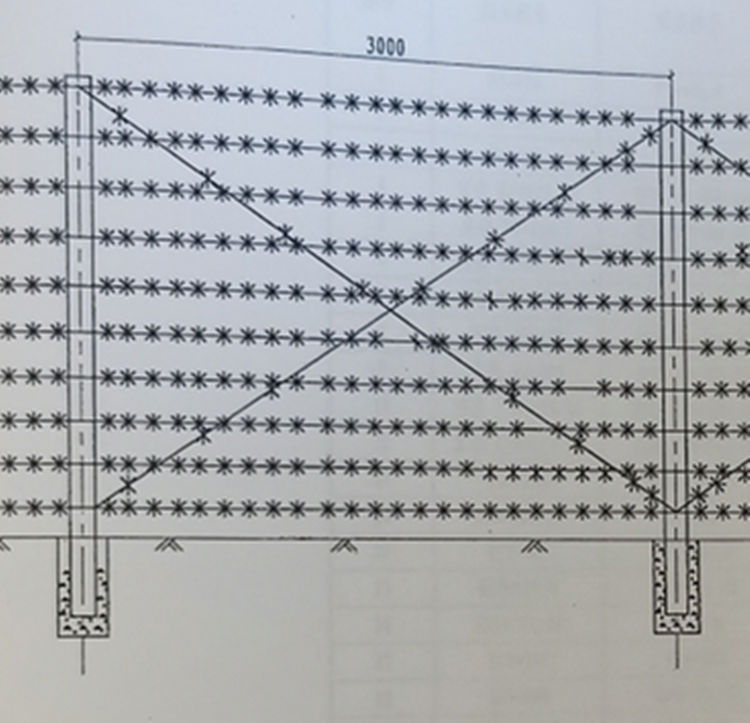 1、刺铁丝用12号钢丝,刺间距10厘米。