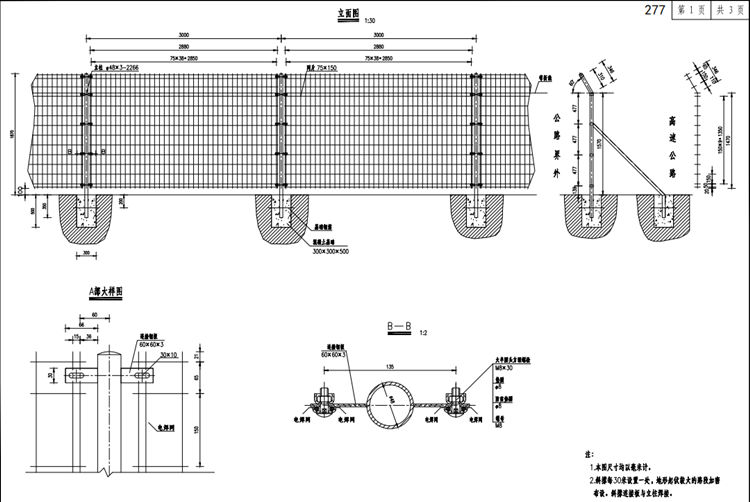 从经济实用的角度出发,凡经过城镇的路段、风景区和互通立交、服务设施范围内采用焊接网隔离栅,其余路段采用刺钢丝隔离栅。