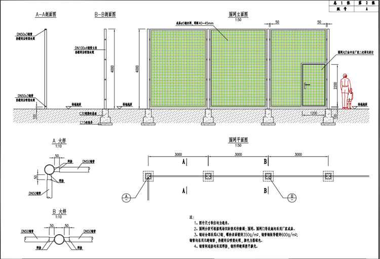 2、围网分段可根据现场实际情况作微调,围网、围网门等设施均采用厂家成品。