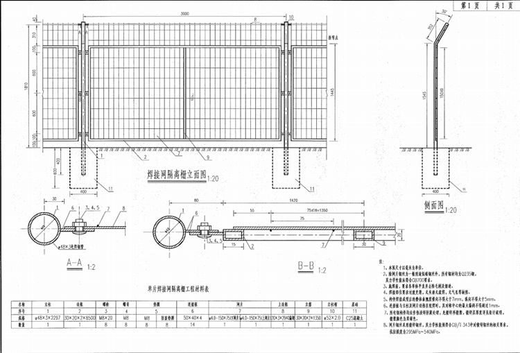 2)、除网片钢丝为一般用途低碳钢丝外,所有钢材均为Q235钢,其力学性能应符合GB700要求。