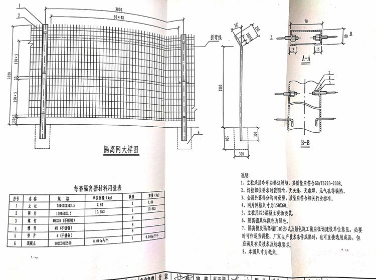 7、隔离栅及隔离栅门的形式及颜色施工前应征询建设单位意见,必要时可作适当调整。厂家生产技术条件成熟时,也可直接选用成品,但应满足有关技术及标准要求。