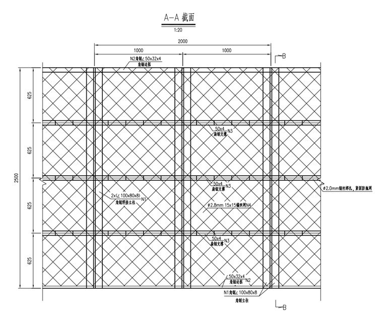 4. N5圆钢与N2角钢采用焊接处理, N4钢丝网挂在N5圆筋上。