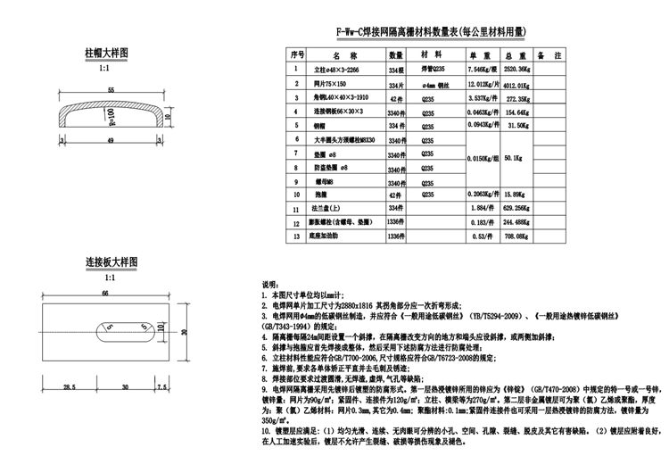 3.焊接网用Φ4mm的低碳钢丝制造,并应符合《一般用途低碳钢丝》(YB/T5294-2009)、《一般用途热镀锌低碳钢丝》(GB/T343-1994)的规定。
