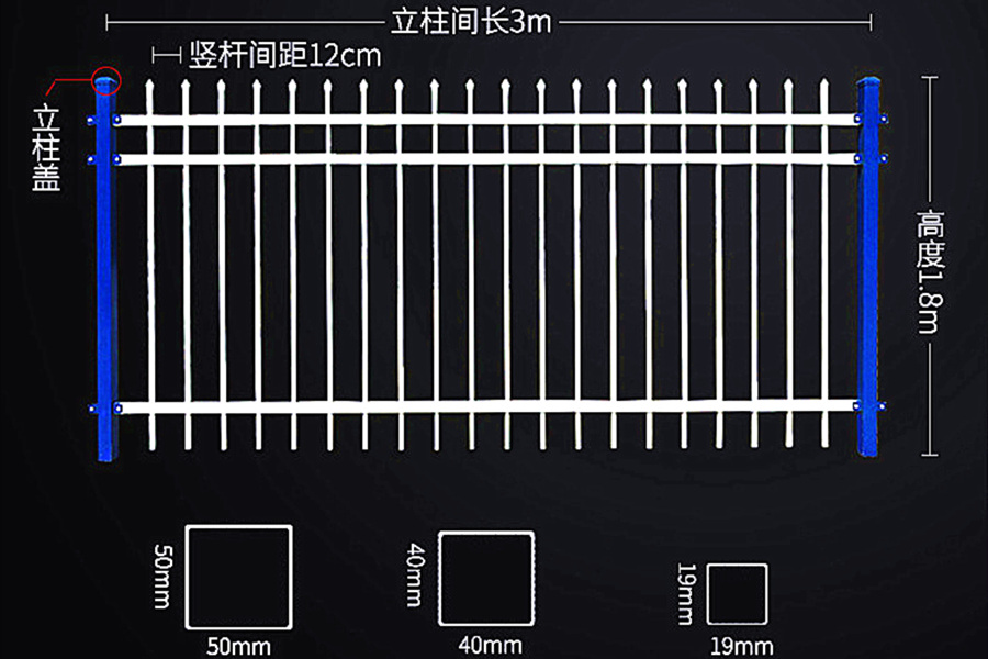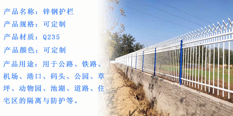 4、锌钢产品的特点是无焊接,锌钢研发的配件与管材完美结合,达到美观、牢固而适用,符合美国栅栏协会标准。